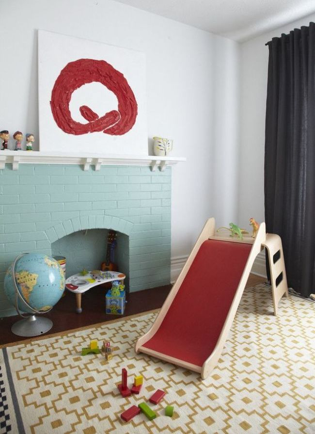 Совсем другая история – это фальш-камин в детской. Сохраняя общий принцип конструкции, вы можете увеличить топочное отверстие и дополнить его полками. На них ребенок будет хранить свои игрушки. Увеличив глубину «топки», вы оборудуете малышу укромное местечко для игр.