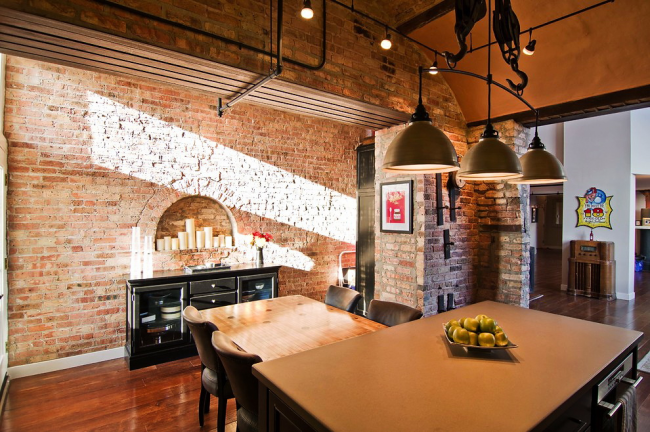 Кирпичный фальш камин в деревянном доме – контраст материалов