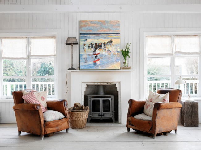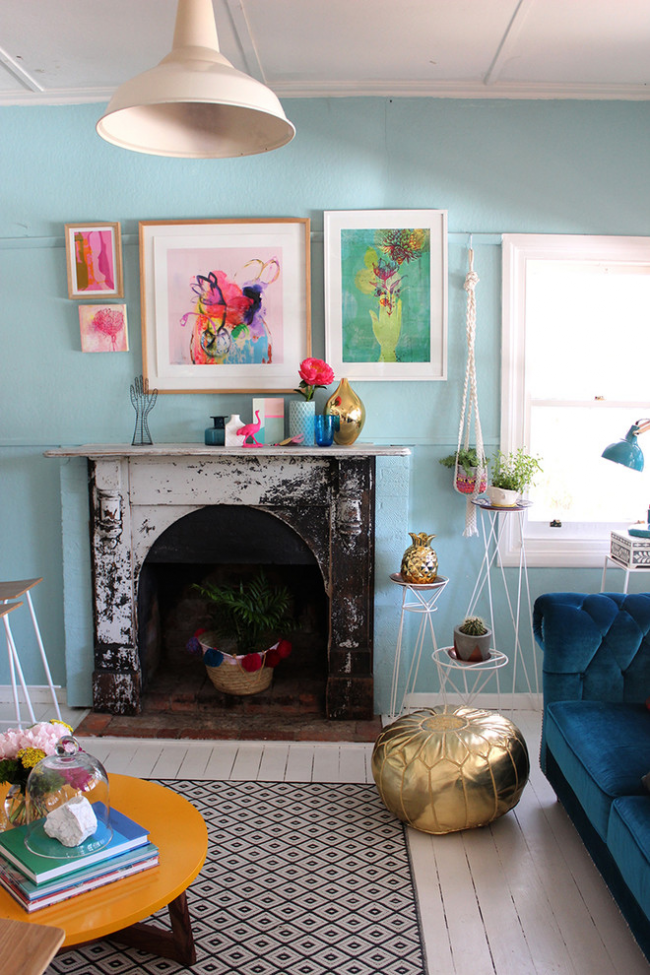 Винтажный стиль в последнее время в фаворе, поэтому, если вы тоже являетесь его поклонниками, почему бы не украсить камин в такой тематике? Тем более что особых усилий и затрат от вас не потребуется, для этих целей подойдут старые вазы, плакаты, картины в старинных рамах и многое другое. Даже старые чемоданы, выкрашенные однотонной краской или покрытые интересной росписью, внесу необычную нотку в оформление комнаты. На полках можно расставить книги в старых переплетах, старые подсвечники, статуэтки, расписные тарелки и многое другое – главное, выдержать весь декор в едином стиле.