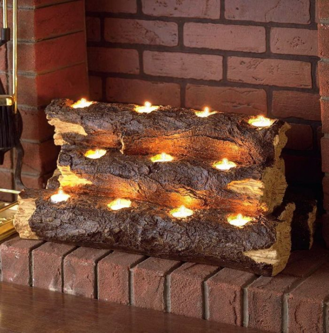 Небольшие свечи на поленьях подарят помещению уют и гармонию