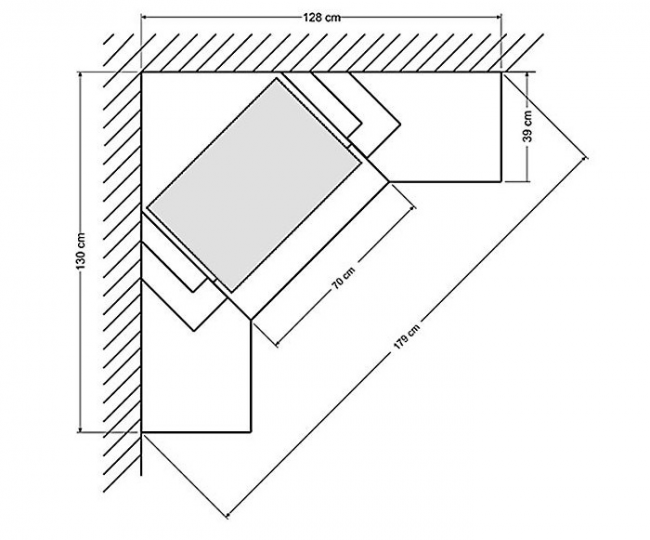 В небольшой гостиной или маленькой спальне можно построить фальш-камин угловой, который сэкономит место для мебели и придаст особый шарм помещению. Выполняют его по тому же принципу, что и любую угловую стенку, полку или шкаф. Глубину изделия выбирают самостоятельно, исходя из количества свободного пространства.