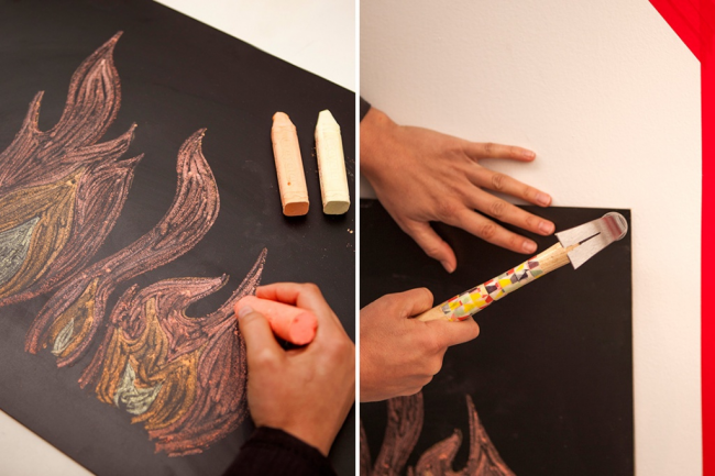 Фальш камин с функцией доски для рисования – отличаная идея для семей с маленькими детьми