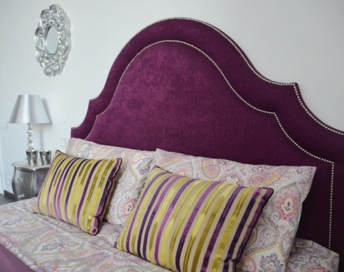 Оно также будет мягким. Единственно отличие тут – это волнообразный рельеф изголовья. Он может быть абсолютно любым, каким вы его видите. В результате такого деревянного изголовья кровати ваша спальня обретёт респектабельный вид, шик и богатство. Особо привлекательно смотрится замшевая обивка. Периметр изголовья можно украсить декоративными камушками, гвоздиками или узорами.