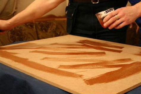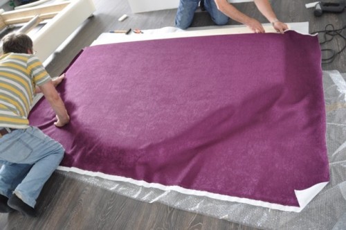 Склеиваем каждый слой: фанеры – поролон – ткань. Ткан должна быть натянута довольно плотно, чтобы не образовывались складки. Таким же образом можно осуществить ремонт старой мебели.
