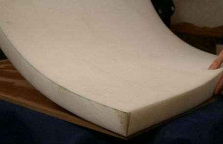 Берем фанеру и намазываем ее клеем. Затем приклеиваем к ней поролон, толщина которого должна быть не меньше 5 сантиметров.
