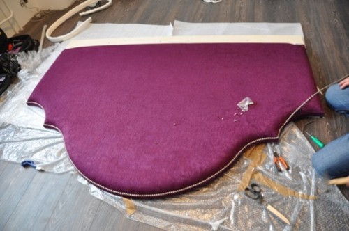 Сделайте надрезы на ткани, чтобы она могла идеально ровно повторить рельеф изголовья из фанеры.