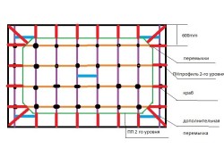 - Багетов или профилей, на которые крепится натяжная двухуровневая отделка потолка;
