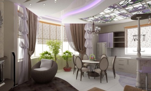 Барокко – данный жанр дизайна предполагает ритмичный танец кривых линий во всем помещении. Обычно «барокко» использовался при оформлении роскошных дворцов и залов. Так как шик, дело тонкое, его стоит использовать и при оформлении фигурных подвесных потолков с подсветкой. Для красочности и яркости следует использовать специальные бордюры по периметру потолка на стенах. Не смотря на то что этому жанру дизайна обычна хаотичность, соблюдайте симметрию.