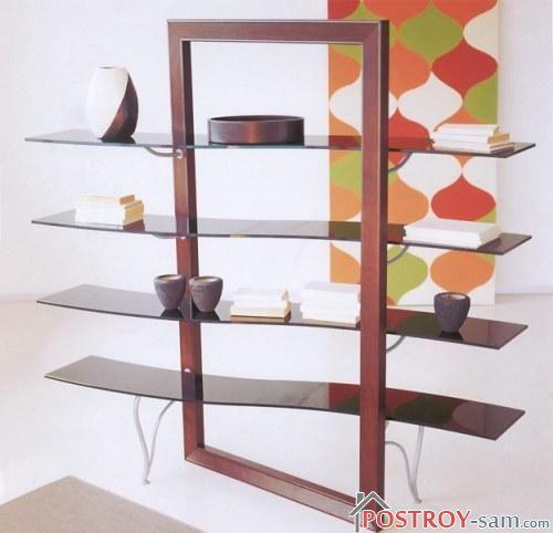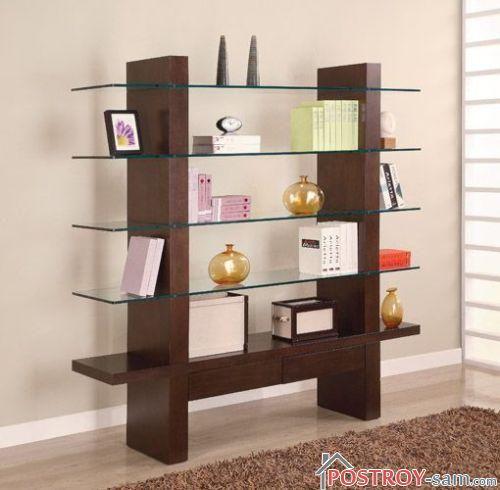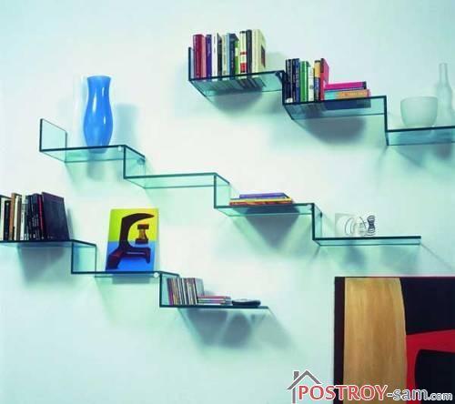 Оригинальные книжные полки из стекла смотрятся намного более выгодно и изыскано, по сравнению с полками из другого материала. Помимо книг на таких полках можно хранить любые декоративные элементы и предметы коллекционирования. Для повышения безопасности полки для книг изготавливаются из закаленного стекла, так как они более крепкие и прочные.