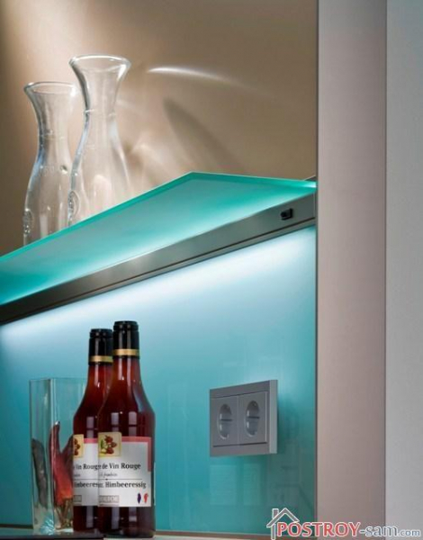 Еще одна отличительная особенность светодиодов – отсутствие ультрафиолетового и теплового излучения. Такая подсветка может служить вам для дополнительного освещения в доме или для привлечения внимания цветовых аспектов интерьера. Обладая широчайшей палитрой цветовой гаммы, светодиодная подсветка стеклянных полок применяются для оформления любого интерьера, благодаря полкам различной толщины комплектуются ниши и шкафы.