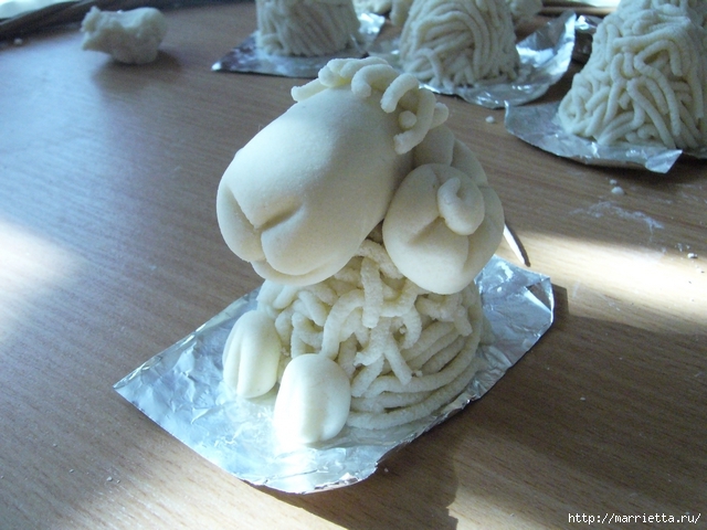 Если вы хотите сделать ягненка, то “шерсть” из соленого теста должна быть подлиннее