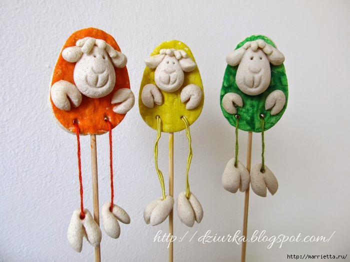 И еще один фото мастер-класс. В данном варианте овечки покрашены акриловой краской