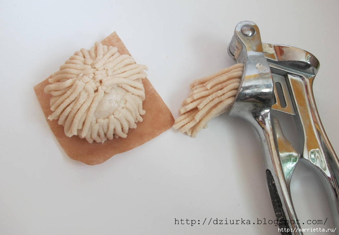 Расправляем выдавленную массу с помощью шашлычной палочки