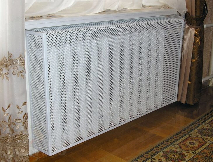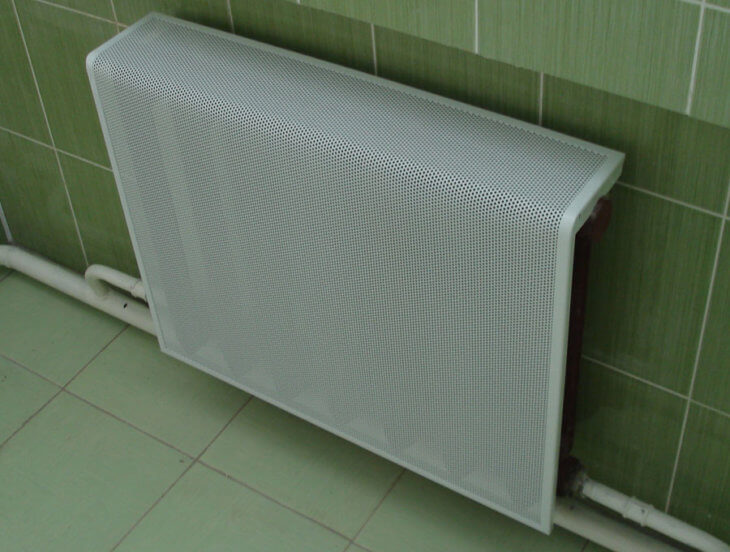 Навесные экраны продают в магазине. Они сделаны из металла и незначительно уменьшают обогрев. Радиатор отопления закрыт и имеет эстетичный вид.