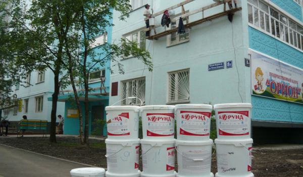 - Корунд. Универсальный материал на водной основе. Подходит как для внутренних, так и для наружных работ.