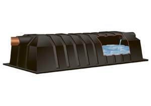 Конструкция прибора может отличаться у разных моделей, но общее для всех устройство инфильтратора для септика — это наличие корпуса из прочного пластика, внутри которого имеется полость объемом 300-400 л. Дна у емкости нет, т. к. она устанавливается на фильтровальный слой из щебня. Такая конструкция позволяет отвести воду для доочистки только в одном направлении (вниз) и избежать ее распространения в стороны, как в фильтровальном поле. Преимущество использования инфильтратора состоит в ограничении площади, занятой системой доочистки.