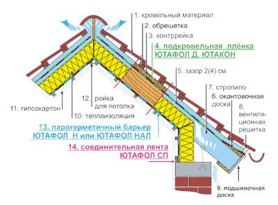 Рисунок 4. Схема теплоизоляции скатной кровли.