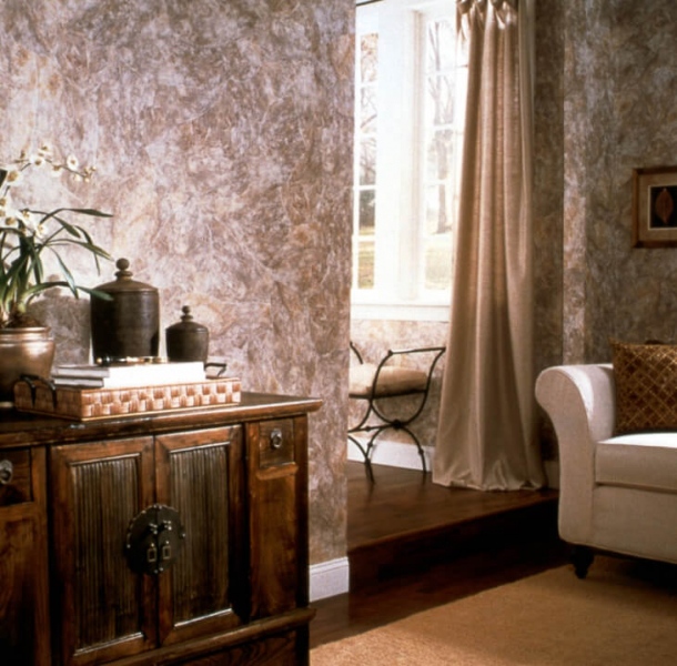 Тетушкам друга они не подходят, поскольку дорогие. Их нанесение требует специального инструмента и навыков. Сухой порошок следует правильно развести водоэмульсионкой. Готовые обои стоят еще дороже. Выбор цветов ограничен.
