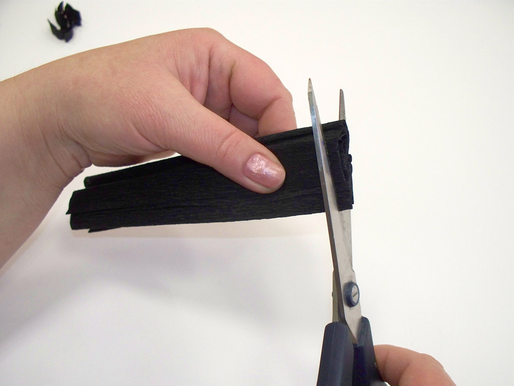 - Гофрированная бумага для обмотки проволоки. Продаётся в больших канцелярских магазинах или в магазинах для фитодизайнеров и флористов. Вместо неё можно использовать плотные столовые салфетки (и даже туалетную бумагу). Если нет подходящей по цвету бумаги, её можно окрасить несмываемыми (перманентными) маркерами с толстым срезом (красят уже готовый стебелёк, см. далее).