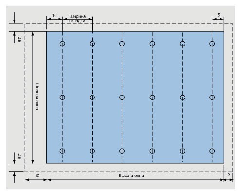 Пошив занавески на встроенных петлях