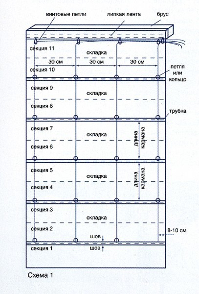 Для крепления шторы в планку ввинчивают крючки на расстоянии 20-25 см, сбоку еще один, который будет удерживать штору в сложенном виде. Верх крепят к планке липучками или мебельными гвоздиками. Шнур разрезают на несколько частей и привязывают каждую к кольцам, расположенным в нижнем ряду. Свободные концы продевают сквозь остальные кольца и перекидывают через крепежные крючки. Штору поднимают до нужной высоты и закрепляют, собрав все шнуры вместе и пропустив через дополнительный фиксатор.