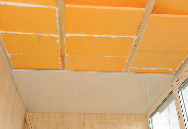 Потолок можно утеплять при помощи каркаса или без всяких приспособлений, крепя утеплитель прямо на потолочную плиту. В этом случае применяются легкие материалы, такие как пенопласт или пенополистирол.