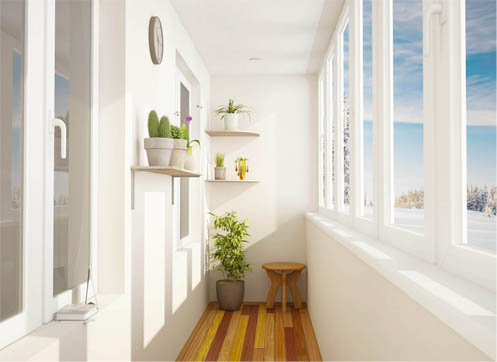 Первым делом, на лоджии необходимо установить энергосберегающие пластиковые окна. Экономить на остеклении не стоит – лучше выбирать стеклопакеты и фурнитуру фирм, хорошо зарекомендовавших себя на «оконном» рынке.