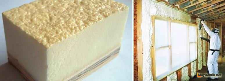Относится к разновидности пластмассы. В его составе высокое содержание газообразного вещества, что обеспечивает хорошую теплозащиту. Технологические характеристики зависят от метода обработки начального сырья, наилучшим материалом считается двухкомпонентный и напыляемый.