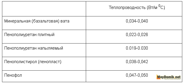 - низкий коэффициент теплопроводности — 0,04-0,45;