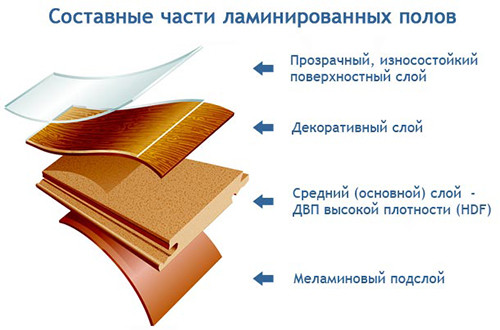 Ламинированный паркет – это многослойное декоративно-финишное покрытие, получаемое путем прессования под высоким давлением. Состоит из (сверху вниз):
