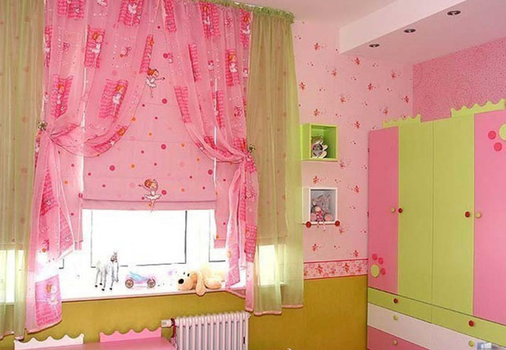 Маленькие дети плохо воспринимают смешанные, неточные тона, сейчас перед ними стоит задача – научиться различать семь чистых основных цветов. В детской девочка будет просыпаться, играть, творить, поэтому в комнате необходимо организовать правильный свет и оформить ее шторами ясных, четких тонов. Подойдут шторы в светлых синих, зеленых, желтых, розовых, бежевых тонах, акварельного оттенка. Эти цвета поддерживают радостное, ровное настроение. А вот оранжевые, алые и пурпурные возбуждают и тревожат.