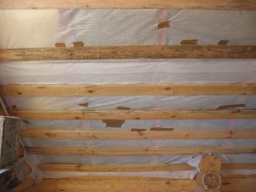 - Устроенная снизу изоляция защищает утеплитель от бытовых испарений, образующихся в ходе эксплуатации помещений, при приготовлении пищи, приеме гигиенических процедур и т.д. Это пароизоляция, предназначенная для предотвращения попадания пара в теплоизоляционную толщу.