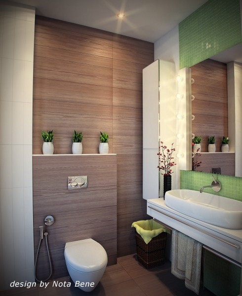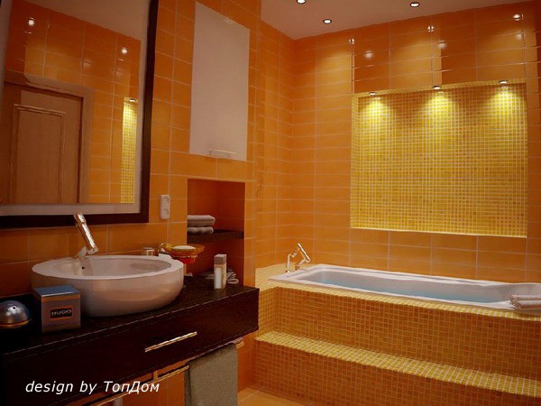 В маленькой ванной не должен царить полумрак, «съедающий» и без того тесное пространство, однако слишком яркий свет тоже нежелателен. Лучше соблюдать меру.