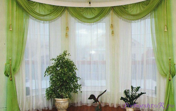 К слову, о стилях. От того, в каком стиле оформлено помещение, зависит и выбор ткани и колера штор. К примеру, стили «модерн» и «хай-тек» не любят массивных и плотных штор. В средиземноморском стиле также лучше использовать воздушный тюль и прозрачные салатовые занавески.