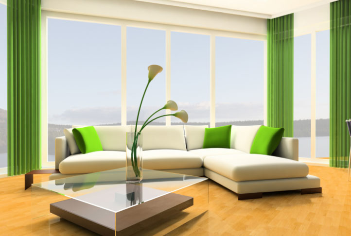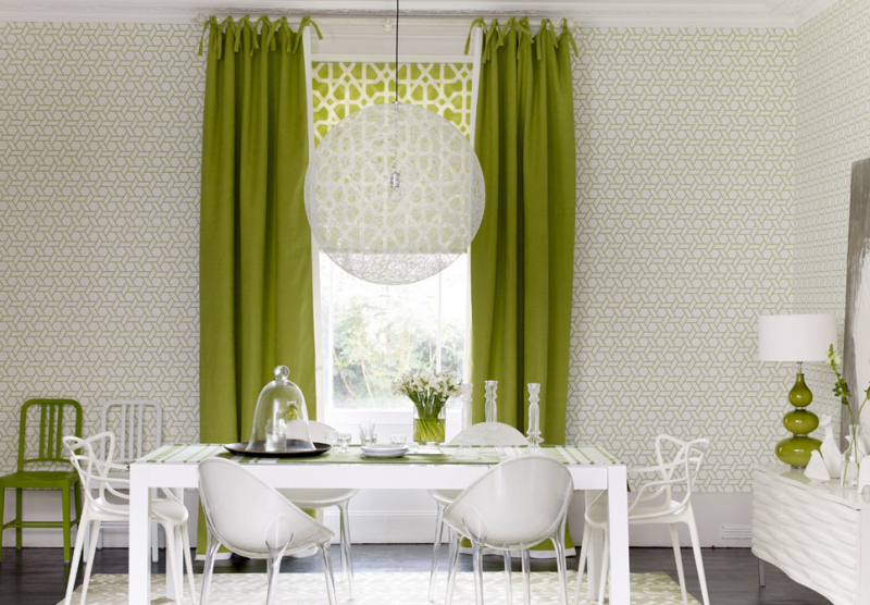 Салатовые шторы: где их уместнее повесить?