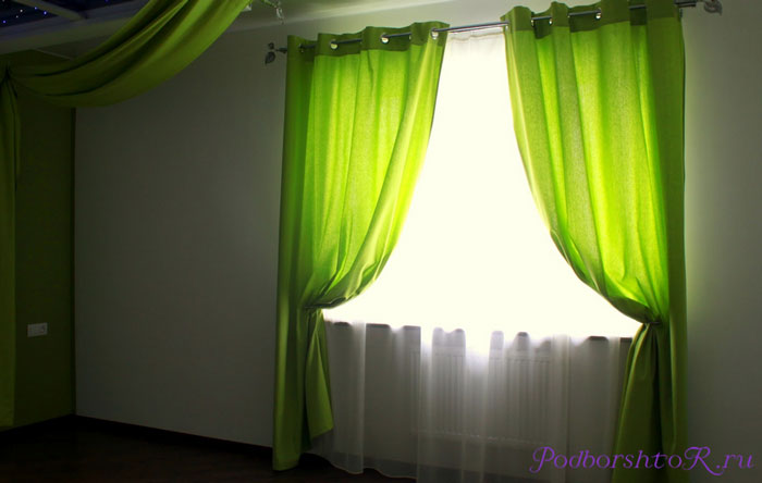 Салатовые шторы: 123 фото и советы от дизайнеров где уместнее всего использовать яркие занавески
