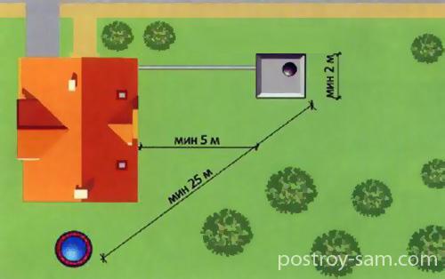 - септик должен располагаться на расстоянии 5-20 м от дома;