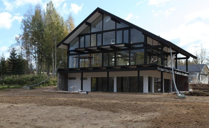 Стеклянный фасад дома за городом