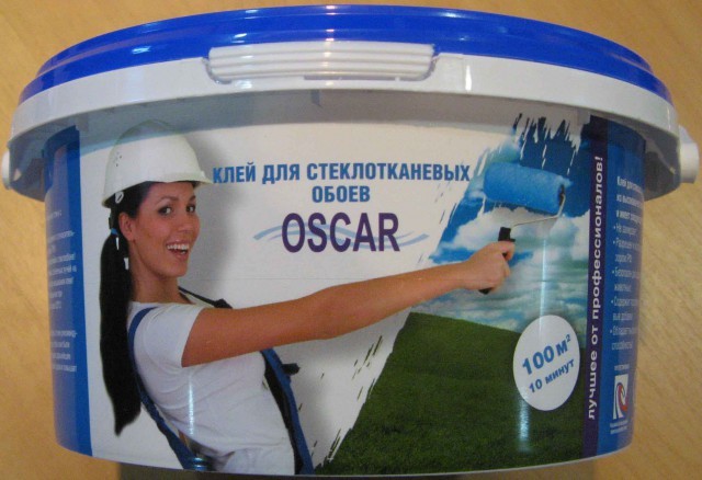 Обычно компании-производители предлагают свой собственный клей, подходящий для их материала. Чаще всего применяется клей Оскар для стеклообоев с цветным пигментом, который показывает равномерность промазывания. Также существует универсальный морозостойкий клей для стеклообоев: Pufas, Security GK 10, Kleo Ultra и другие.