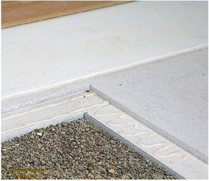 В случае если поверхность плит не требует выравнивания, вместо сыпучих материалов можно использовать плиты из экструзионного пенополистирола, плотно уложенные друг к другу. Эти же плиты можно использовать и в качестве дополнительной тепло- и звукоизоляции, если сыпучий материал обеспечивает их в недостаточной мере. При укладке пенополистирольных плит вдоль стен также прокладывают кромочную ленту.