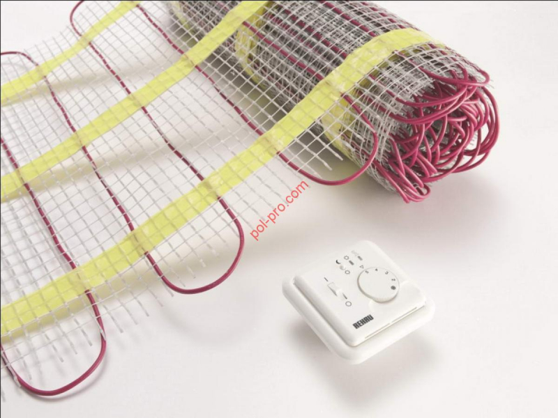 - Термоматы. Тонкий кабельный теплый пол на сетке. Термоматы удобны для установки под керамическую плитку, поскольку покрытие равномерное и не широкое.