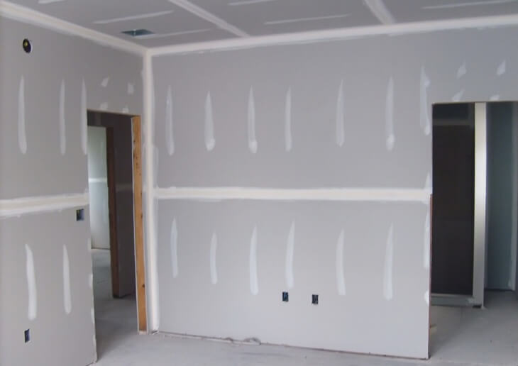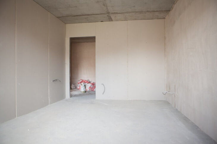 - В новостройке, когда не уложен пол, необходимо исключить контакт ГКЛ с мокрой стяжкой — гипс напитается водой и разрушится;
