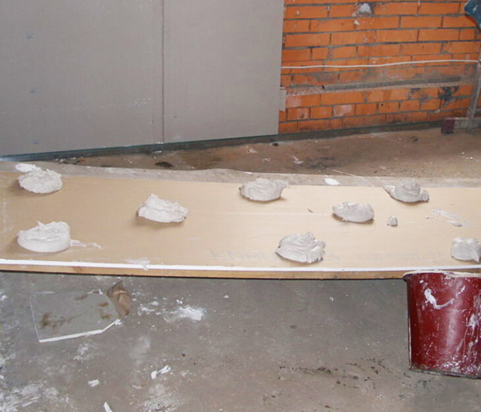 Если не применить подпорку для материала во время застывания клеевого состава, тогда ГКЛ может не приклеиться или же зафиксироваться некачественно и со временем отпасть.