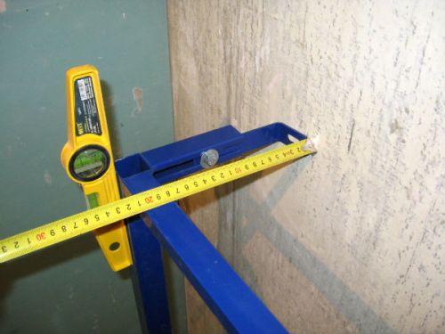 Горизонтальное положение выставляют с помощью стеновых креплений, положение которых также можно изменить нужным образом. После того, как положение инсталляции точно выставлено и зафиксировано, можно привинтить ее к стене. Для придания раме большей устойчивости ножки можно дополнительно зацементировать.