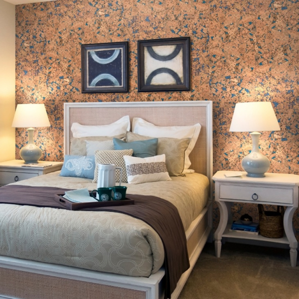 Отделка стен пробковыми панелями дает возможность создать уютную и теплую атмосферу.