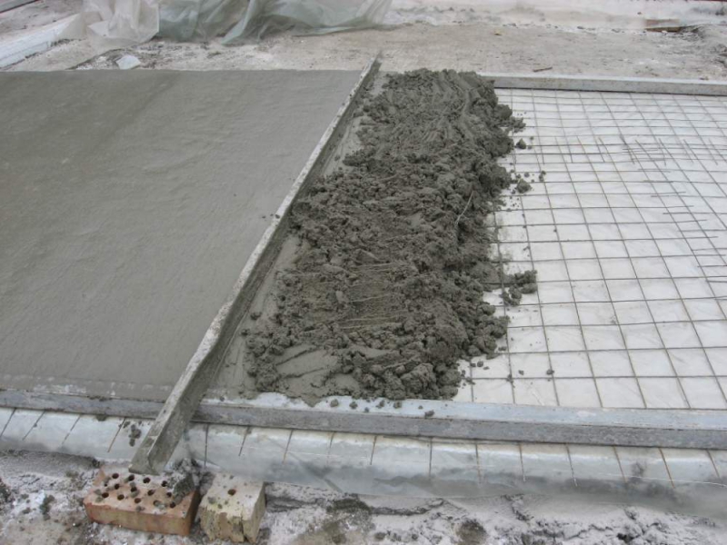 Это много воды, цемент, песок и сметанообразная консистенция раствора. Она дает самое прочное покрытие. Прочность смеси определяется пропорциями цемента и песка. Чем больше цемента — тем выше марка и прочность. В строительных магазинах продают уже готовые песчано-цементные смеси (ПЦС) разной прочности. Например, ПЦС-М150.