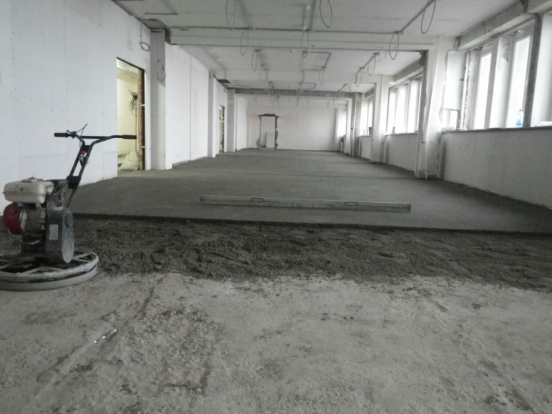 Результат. Прочная стяжка в кратчайшие сроки. Боится влаги.