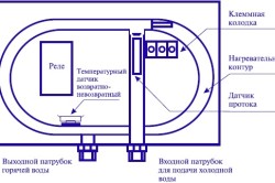 В приборах есть нагревательная емкость, представляющая собой узкую трубку, которая и обеспечивает быстрый прогрев воды. В качестве нагревательных элементов могут использоваться неизолированные спирали, ТЭНы, газовые горелки и т.д.