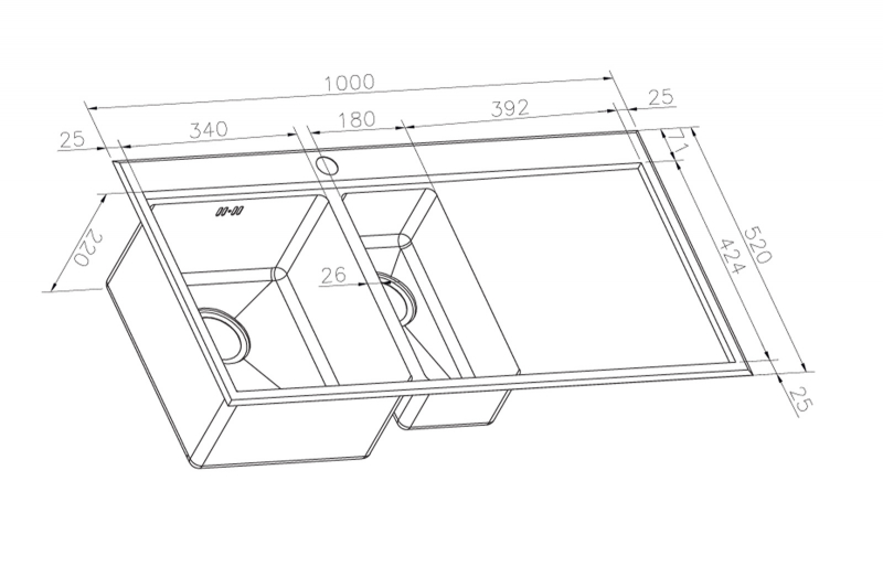 Интегрированная раковина встроена в рабочую поверхность стола, создаст дополнительный комфорт и удобство в мытье овощей и фруктов.