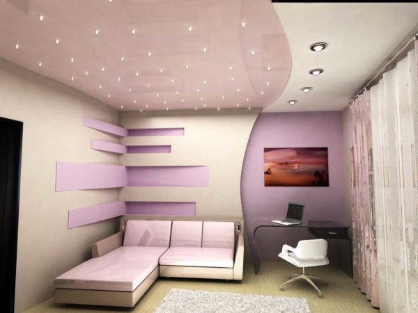 - создание комбинированного освещения и разделение комнаты на зоны;